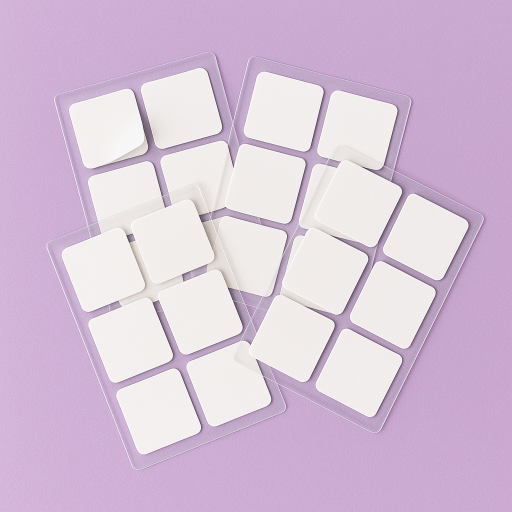Pequeños, ligeros y transparentes — nuestros parches no parecen etiquetas visibles. Son tan sutiles que podrías olvidar que los llevas puestos.